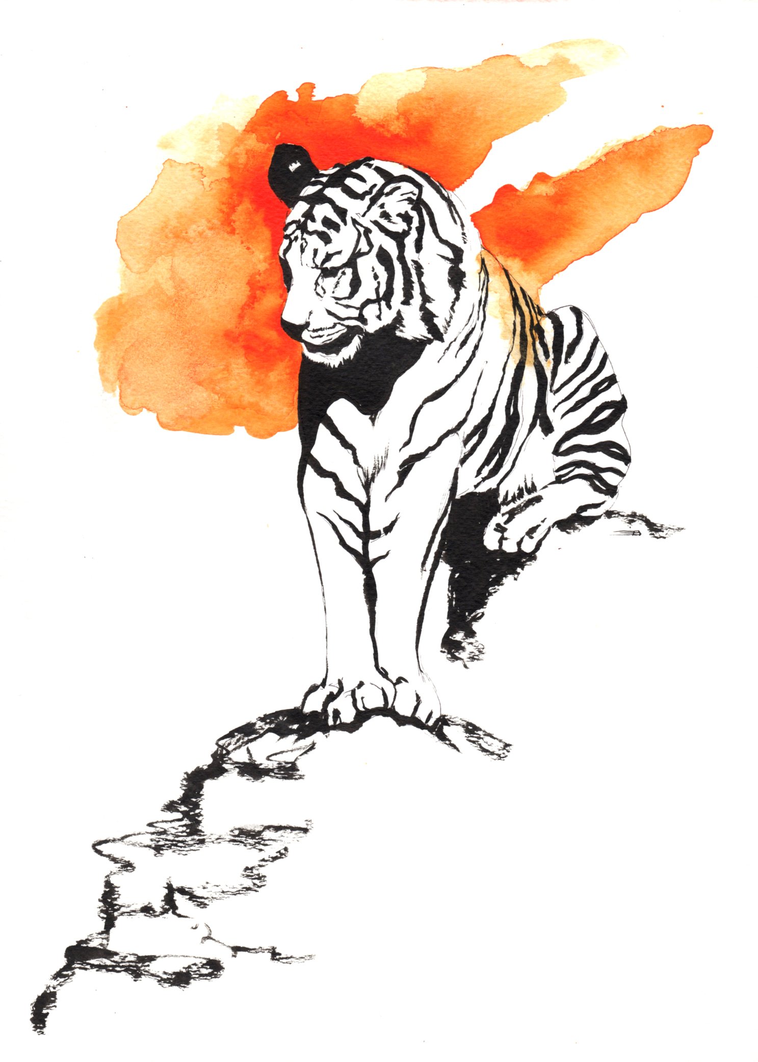 Ink drawing based on tiger at the Central Coast Zoo in Templeton, California.